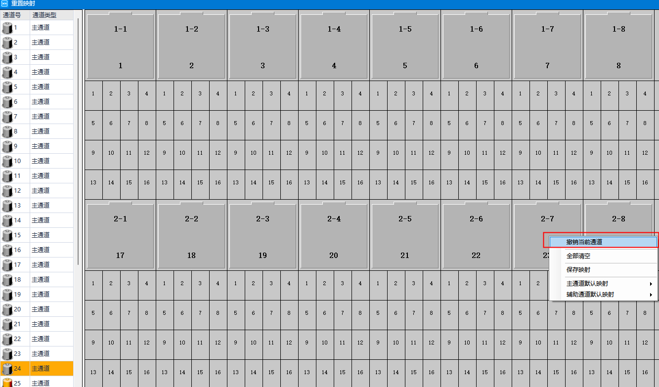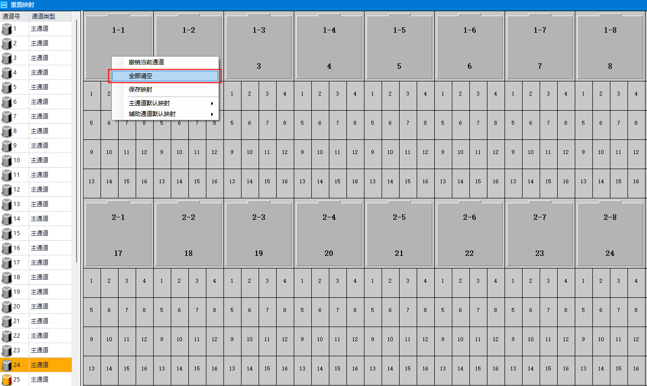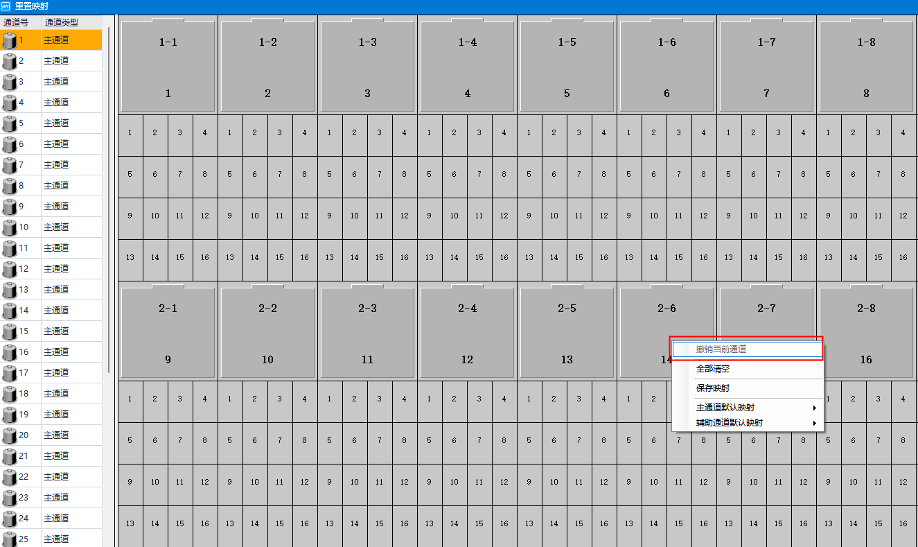 右键撤销当前通道后重新映射。可以取消单个通道映射,然后拖拽式重新映射,或者右键选择“全部清空”。