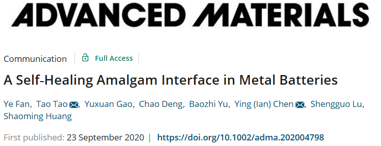 Y. Fan et al., A Self-Healing Amalgam Interface in Metal Batteries. Adv. Mater., e2004798 (2020). DOI: 10.1002/adma.202004798